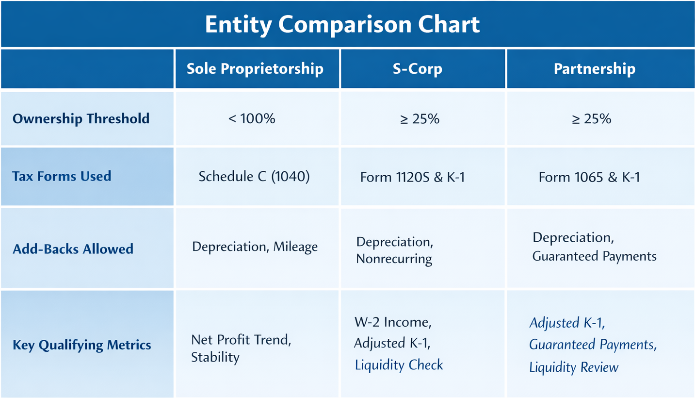 Whether you're a sole proprietor, run an S-corp, or you're a partner in a business, you'll see exactly how lenders calculate the income they'll use to qualify you.